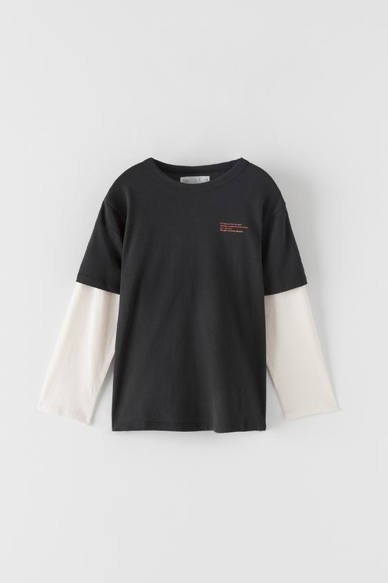 #Sleeve | Round neck T-shirt with contrasting long sleeves. Printed text at chest.